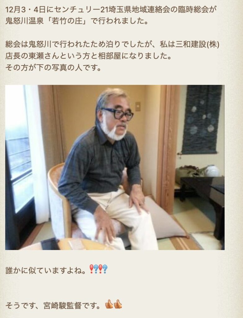 髭やメガネ、雰囲気までそっくりで、街中でも「宮崎駿に似ている」と声をかけられるほどだったといいます。