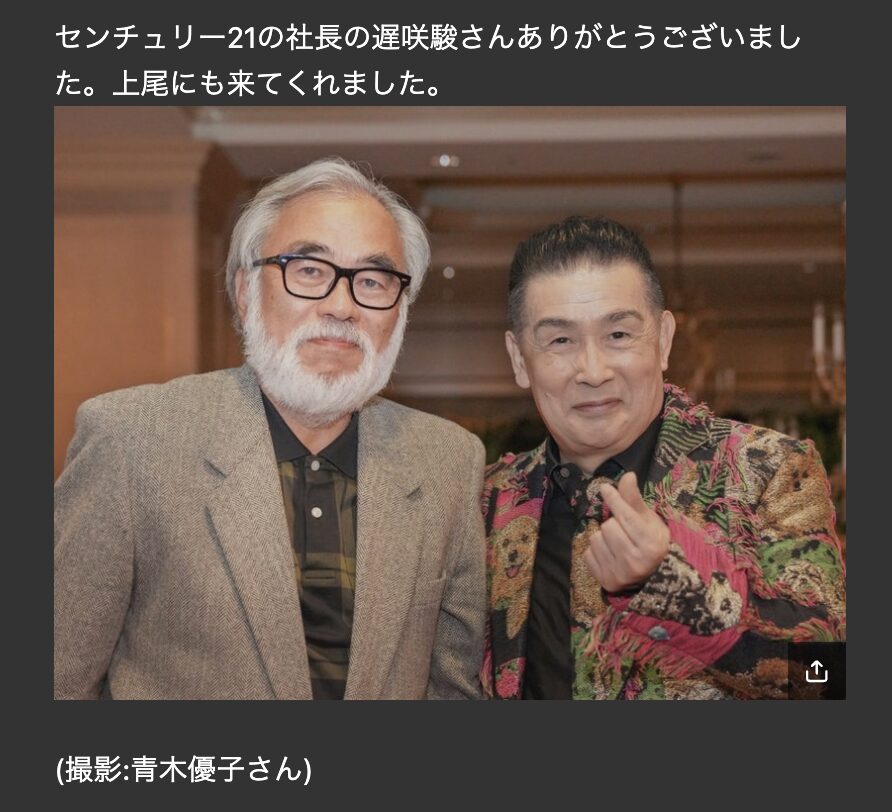 遅咲駿さん自身も宮崎駿そっくり芸人としてテレビ出演やイベントで活動しており、事務所のバックアップで多くのメディアに露出できています。